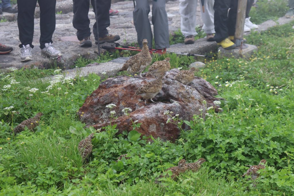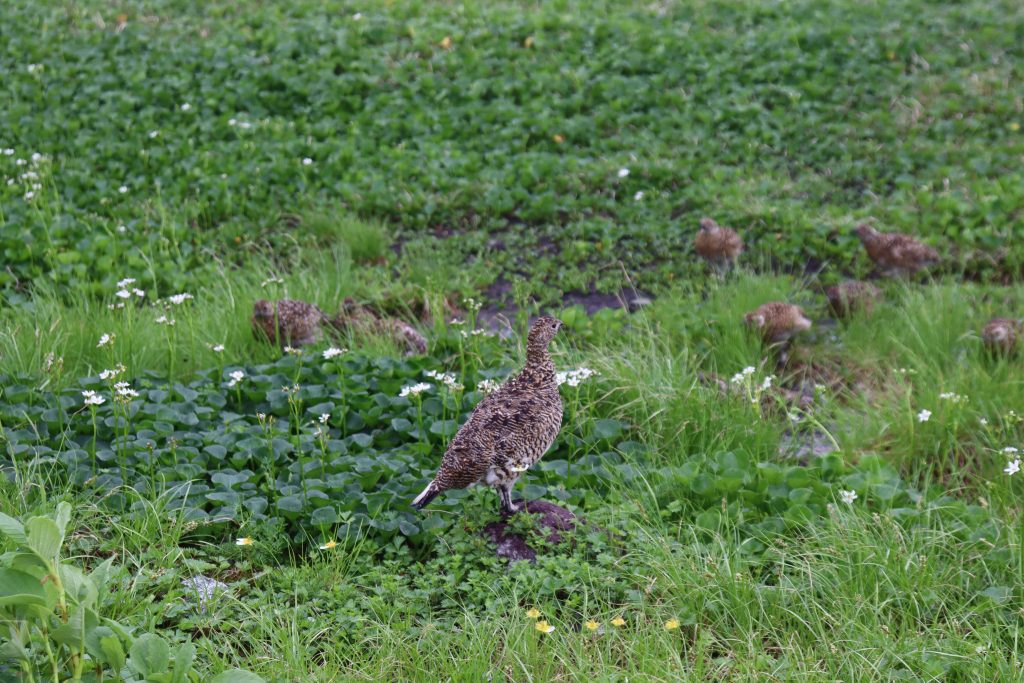 教えてもらった場所に行くと雷鳥を数匹見ることができました。