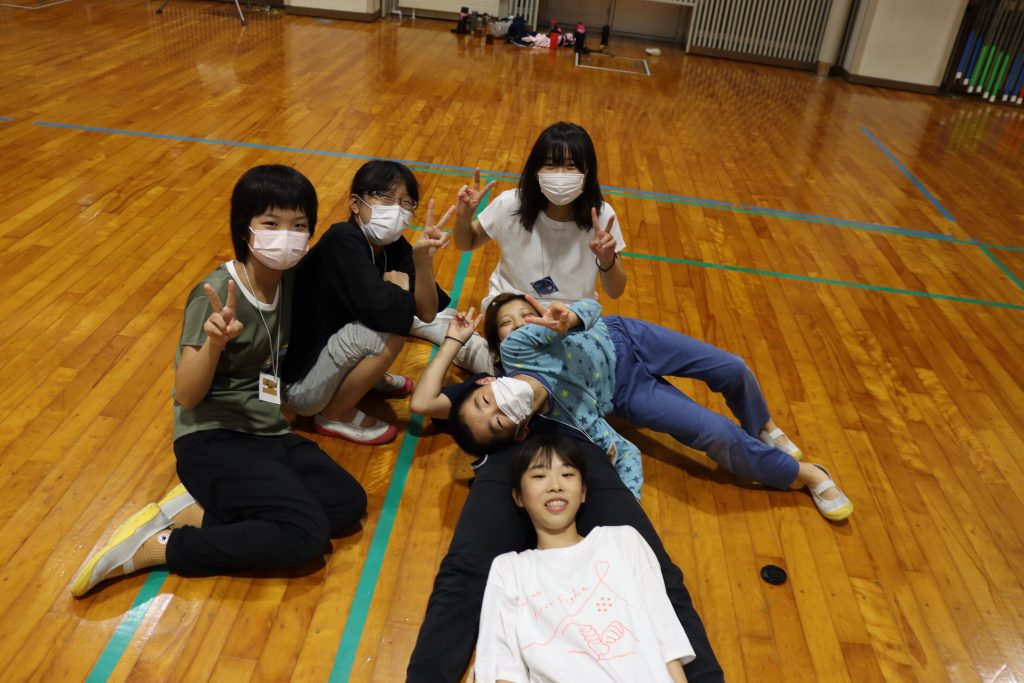 夜は体育館でゲームや大縄跳びをして盛り上がりました。