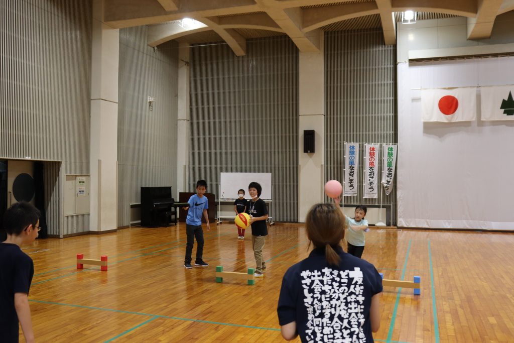 体育館でドッチボール、障害物リレー、ボッチャを行い男女や学年の垣根を越えて楽しく過ごしました。