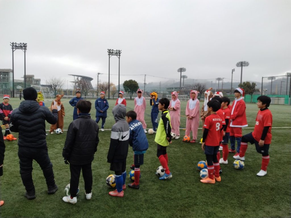 クリスマスイベントも兼ねてサンタの服装やトナカイの恰好をしたエスピロッサFCのジュニアユースのメンバーもいた中で、数チームミックスして12分1本を午前午後たっぷりと試合させてもらえました。