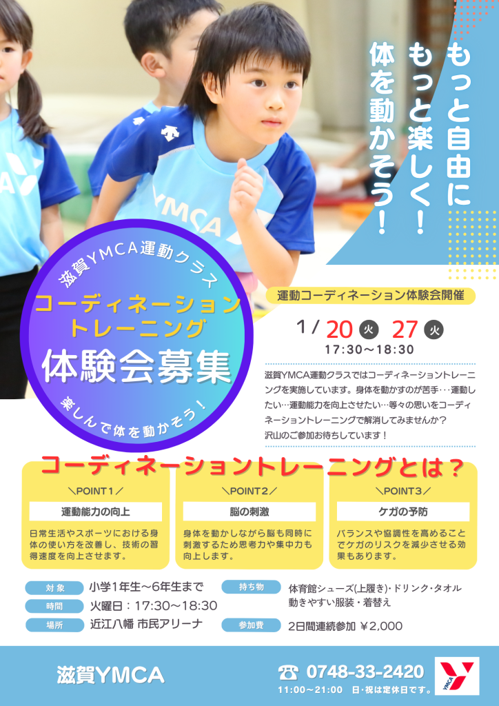 冬の期間にスポーツを体験して、体力アップや技術アップを目指しましょう。4月からクラスに参加してみたい人にもおすすめです。自分にあったプログラムを探してみませんか。 サッカー コーディネーショントレーニング サッカー 対 象: 小学1年生~6年生 場 所: 彦根 佐和山グランド コーディネーショントレーニング 対 象: 小学1年生~6年生 場 所: 近江八幡 市民アリーナ もどる 共有: