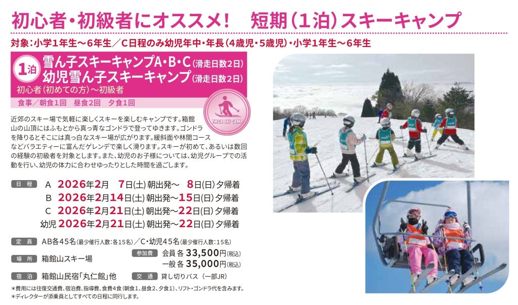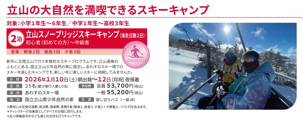 冬休みの期間やスキーシーズンの2月に宿泊をしてキャンプを楽しみながら、思いっきりスキーを楽しもう!