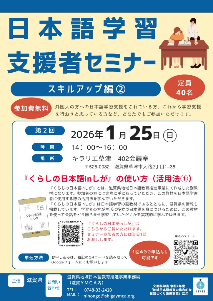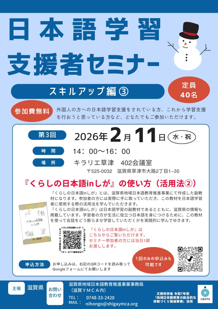 2025年度も滋賀県地域日本語教育推進事業の一環として、日本語学習支援者セミナーを開催いたします。